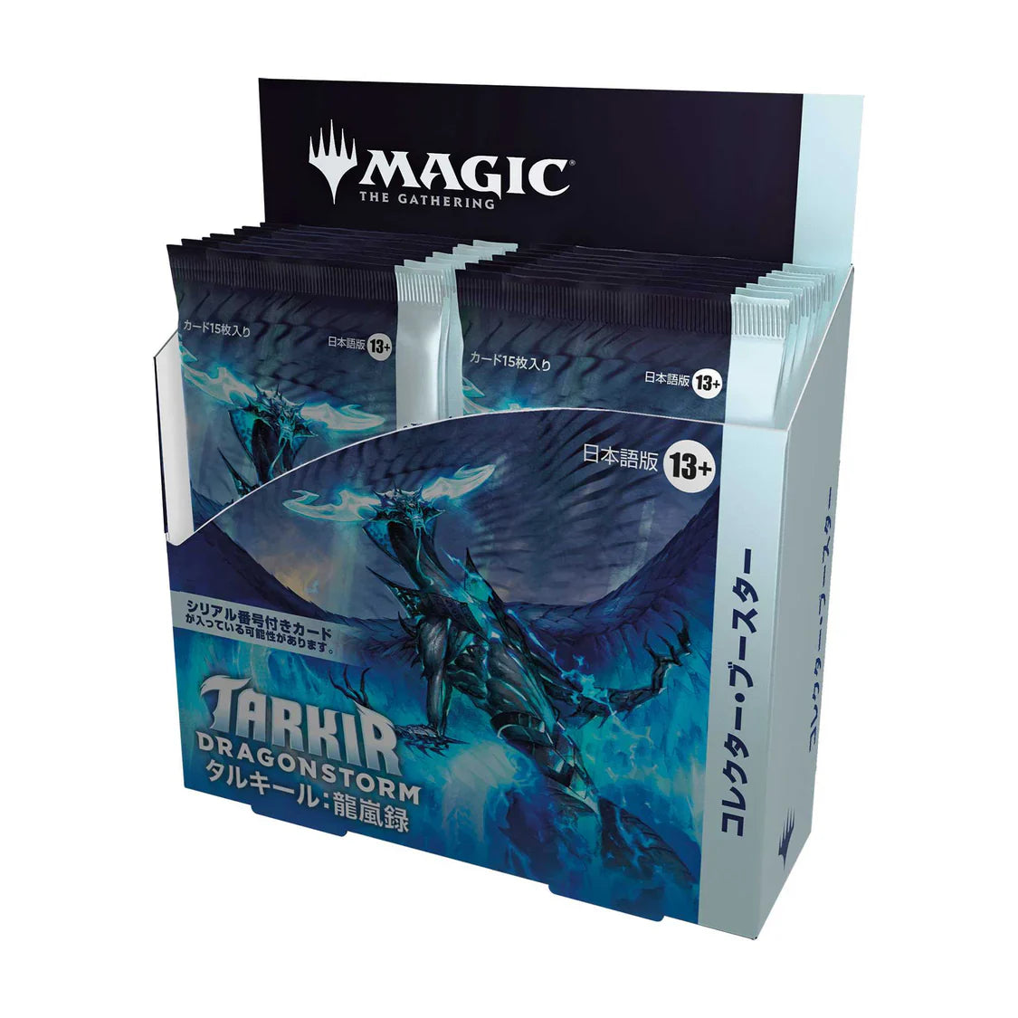 his listing is for the Japanese version of the Collector Booster. Tarkir faces a full-scale draconic assault, pitting clan against clan and all of civilization against a maelstrom of wings, claws, and fire. Choose one of five clans and discover your favourite way to play, then master the fearsome Dragonstorms and summon dragons of your own to rain down fiery devastation!