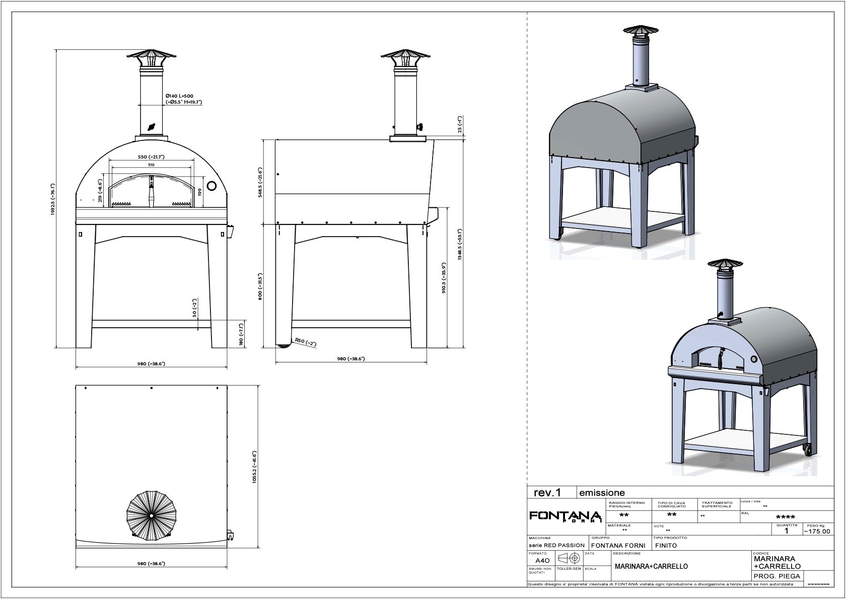 Fontana Marinara Anthracite Wood Pizza Oven Including Trolley