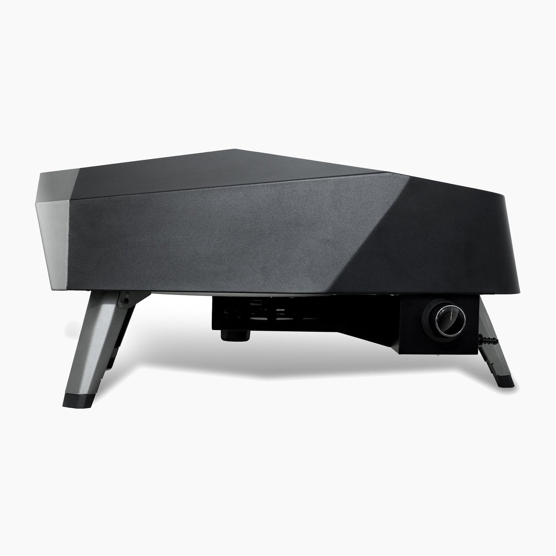 Underneath the Juno 16" you will find a dial that you can use to rotate your pizza to get a consistent cook in just a couple of minutes. There is also a metal match holder included if the ignition fails. The foldable legs make it easy to transport and store away when you're are finished using the pizza oven. It comes with a gas pipe connection included, with a stainless steel body for a robust yet sophisticated appearance.