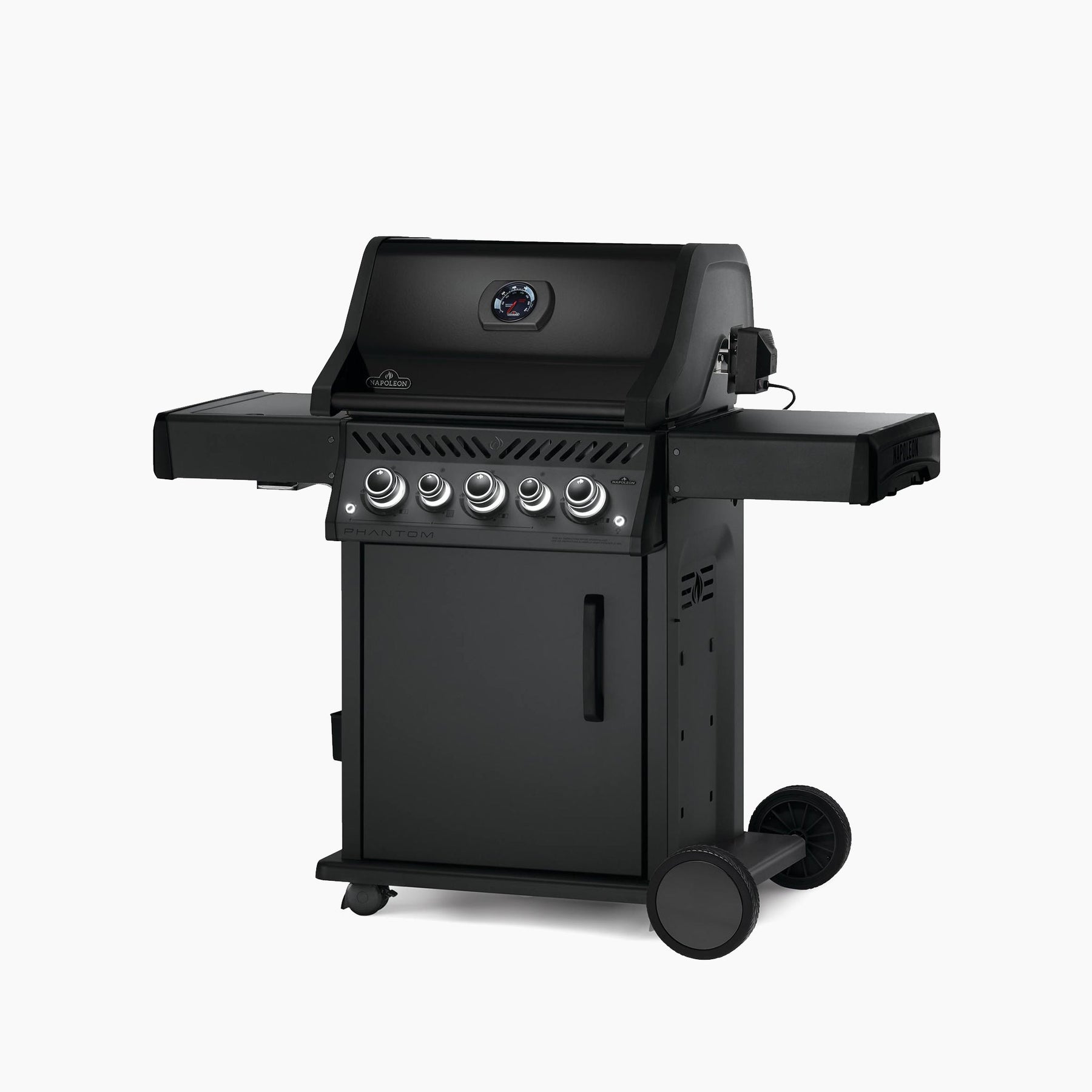 Deep and dark, the Satin black Phantom Rogue® SE 425 Propane Gas Grill with Infrared Side and Rear Burners is a barbecue like no other. From the top of the lid to the easy to move locking casters, this gas barbecue is completely silky Satin black. The edgy Phantom Rogue® SE features maintenance-free, stainless steel cooking grids and an integrated multifunctional grilling rack - ideal for entertaining.
