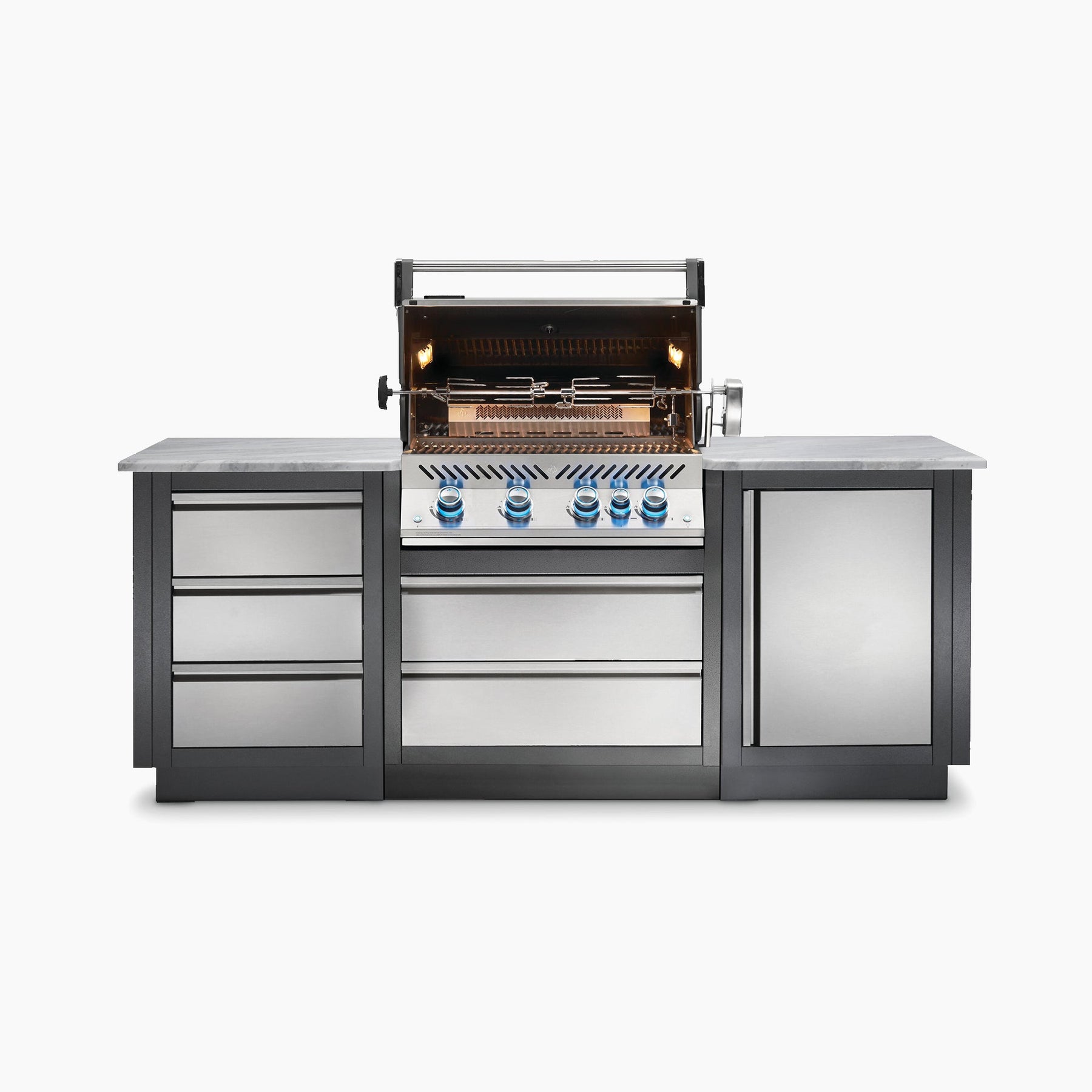This grill isn't just good-looking; get the most versatile grilling experience, whether you are grilling low and slow or searing something scrumptious; you'll know it's a Napoleon with the iconic WAVE™ cooking grids for those distinctive sear marks. Use the integrated infrared rear burner for succulent rotisseried meals. Perfect and professional, the PRO™ 500 Built-in Grill Head is the ideal addition to your outdoor gourmet kitchen.