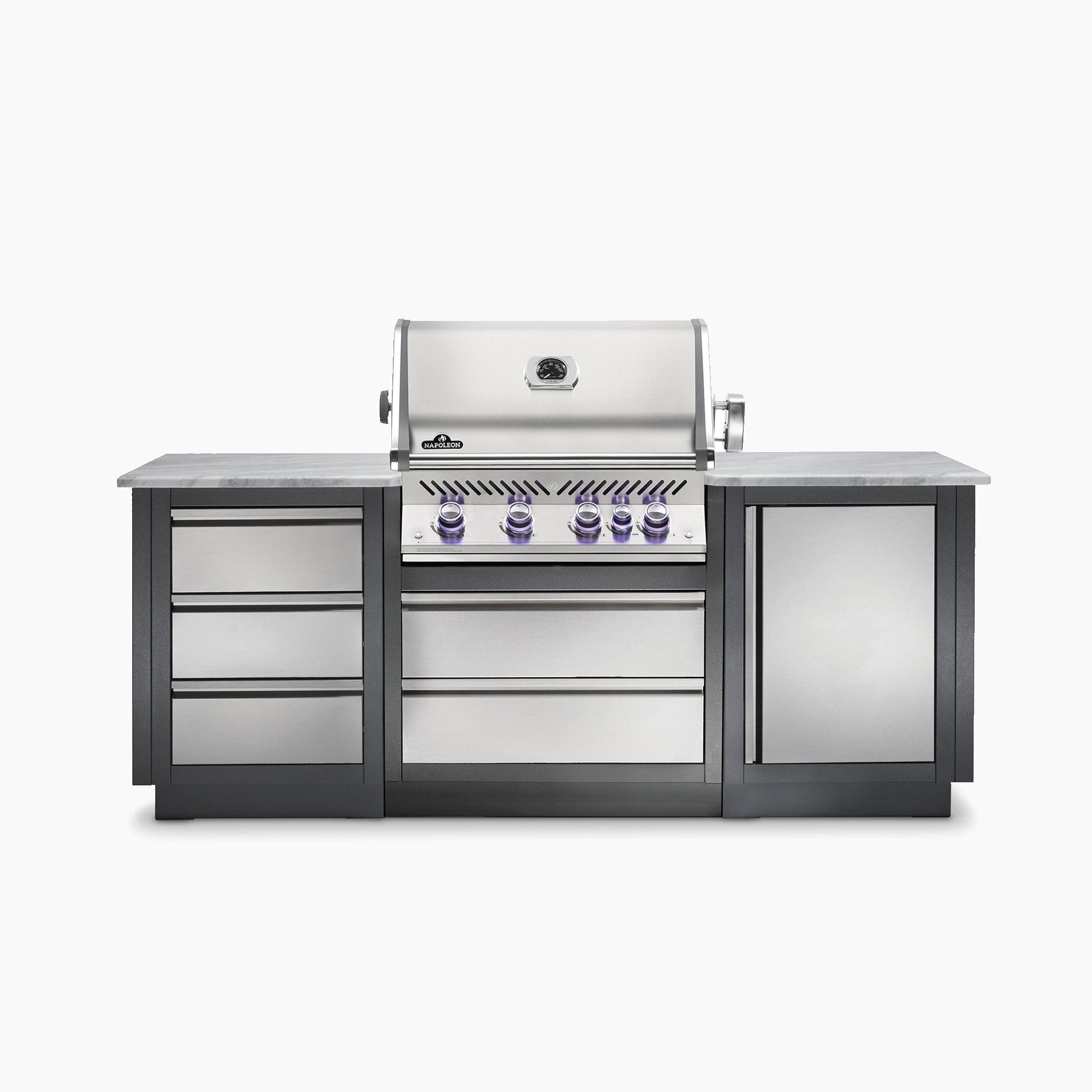Buying a Built-In Grill Head means that you can have your steak and eat it too. The Napoleon Built-In Prestige PRO™ 500 Natural Gas Grill Head with Infrared Burner provides unparalleled performance and durability without skimping on style. Shining stainless steel construction makes this grill durable while chrome accents gleam with luxury. The LED Spectrum NIGHT LIGHT™ control knobs illuminate the control panel in a colour to match your mood, with near endless possibilities.