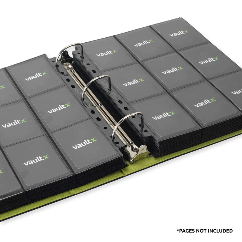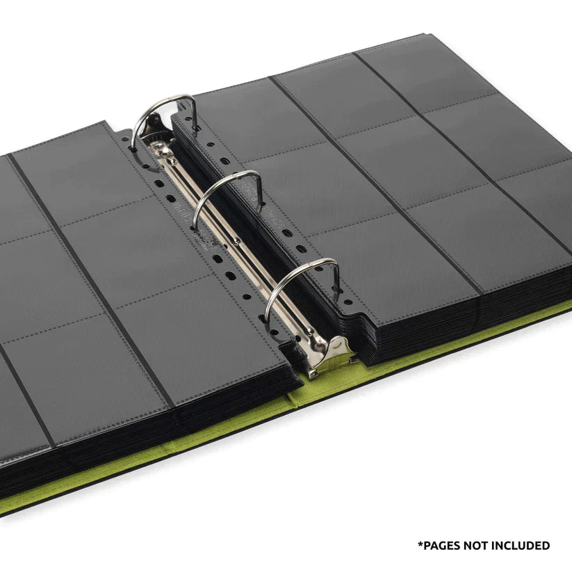 Premium quality D-ring clip binder. With padded, extra rigid front and rear covers made from non-slip, water resistant Exo-Tec material. 50+ page capacity for 900+ trading cards.